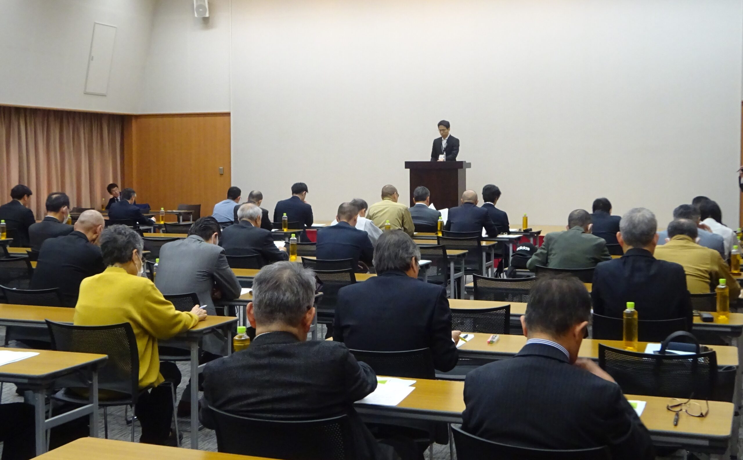 4月9日、経済センタービルにおいて、会員企業から60名の参加を得て、代表者研修会を開催しました。札幌市の各発注部局から講師を招き、令和8年度予算や主要事業、入札制度について理解を深めました。